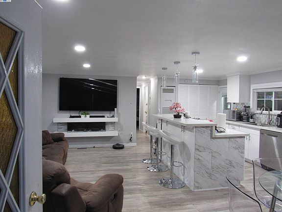Introducing a remodeled and stunning 2-bedroom, 2-bathroom mobile home nestled in a very convenient location in Hayward. This contemporary residence offers the perfect blend of comfort and style, catering to a lifestyle that embraces modern living. Step into the welcoming open concept design, where the living area seamlessly connects to the well-appointed impressive kitchen with solid surface countertops and modern amenities with stainless appliances and stylish cabinetry, making meal preparation a delight. Laminate flooring throughout and Modern Corner shower enclosure in master batroom. Pets allowed w/restriction. Parking for 3+ cars, 2 outlets for electric cars, storage shed and BBQ area to relax. Park offers club house, swimming pool, laundry room, sauna, guest parking and car wash area, close to stores, transportation, Mia Come True Playground and Tennyson Park to enjoy with family and friends! you'll love the overall vibe of this mobile home, come and see it!