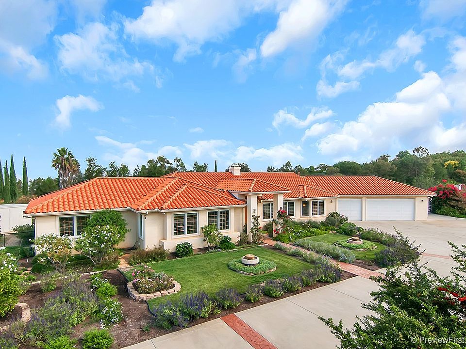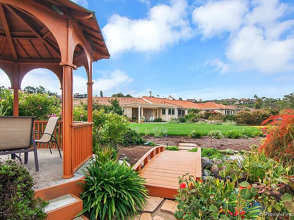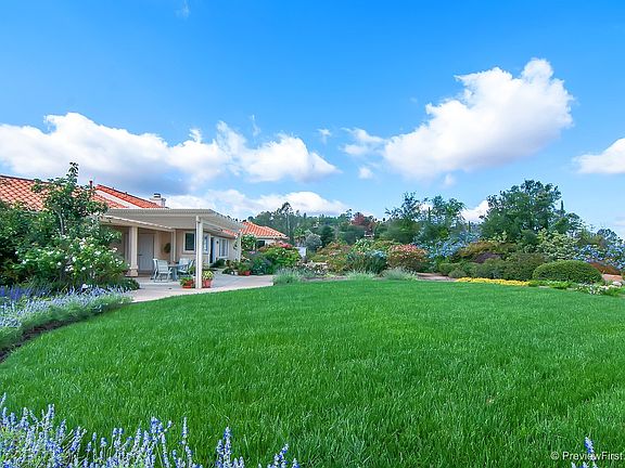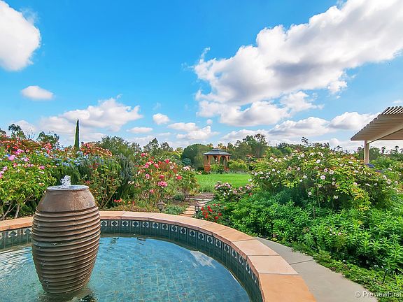 OWNED SOLAR! Spectacular setting with panoramic views & beautiful gardens, picturesque gazebo & decks, cascading waterfalls into pond, striking fountain in back and two in front! RV parking. Fenced in back. Immaculate single level w/light open interior. Spacious kitchen w/ctr island, granite counters, gas cooktop, lg pantry & informal dining! Fam rm w/granite face fplc & blt-in media center. See virtual tour & suppl..so much to offer! Alum patio cover. 3 sheds. Oversize 3 car garage w/cabinetry.