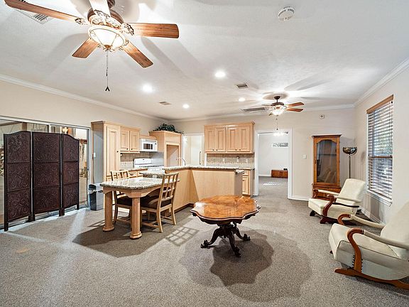 Welcome home to peaceful country Ranch Style Modern Contemporary 4-bedroom 3 bathrooms 2-1/2 baths Barndominium retreat on 5 ac. (2 living quarters)Nestled in the quiet suburbs. NO HOA, Main House, you will enjoy an open concept Great Rm for entertaining family/friends. Impressive open concept kitchen, living w/granite counter tops ,tile floors, built-ins and crown molding, ceiling fans, refrigerator, wine cooler, Viking Professional double, plenty of storage, walk-in pantry, surround sound, wood burning fireplace, pool, waterfall w/cave & hot tub. Spacious primary bedroom & bath w/double vanities, air jet tub, oversized walk-in closet w/built-in drawers. Oversized laundry room, 4 bay garage/shop spaces area 60' deep with openers, 1/2 bath HVAC, 50 amp plug & dump station, Generac 80 KW... Conveniently located just minutes from Woodlands Parkway, Aggie Toll, Hwy 249, 99, 45, close to shopping and restaurants.