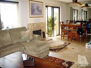 End unit with views. 3 bedroom, 2 bath home with custom tile flooring, custom tile fireplace, good size rooms, master bedroom has walk-in closet and private patio. Decor white tile in baths. Two patios. Split fence drops, view of mountains and greenbelts.