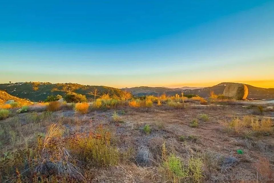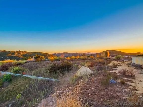 Enjoy Stunning Mountain, Canyon and even Ocean Views, atop North County’s finest mountaintops on this private 4.09 acre property. Exceptional opportunity to build your dream home on an amazing ocean-view lot on a quiet paved country road in highly desirable Hidden Meadows. The steep drop-off to the west provides privacy and endless westerly views of hills, valleys, and breathtaking sunsets. Additional amenities include: electric at property entrance, water meter at property entrance, rough pad for potential home and room to grade parking area. Neighborhood features two tennis courts, two rec centers, and an Olympic-sized pool for an optional small annual fee. Property is close to the I-15 and all North County has to offer. Don’t miss this opportunity!