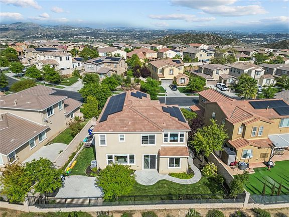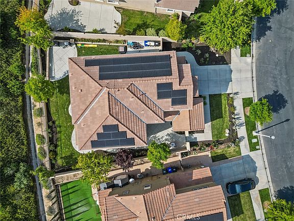 Welcome home to this stunning 4+ bedroom, 4.5 bathroom home located on one of the best cul-de-sacs in the exclusive gated community of West Hills in Valencia. Tired of energy bills…keep reading this house has none! As you arrive to this gorgeous home, you will love the lush yard and private courtyard entry. Upon entering the home, you are welcomed by beautiful vinyl wood floors throughout and an open floorplan with lush hillside views and plenty of natural light. The great room has plenty of space for hosting gatherings with a spacious family room with fireplace. Kitchen is perfect for a large family with an eat in island, dining area that leads outside to your outdoor living space and an additional formal dining room with vaulted ceilings. You will love the convenience of the downstairs bedroom and full bathroom with private entry for guests or in-law suite. Upstairs opens to a cozy loft with a full bathroom attached for an easy 5th bedroom conversion. The secondary bedrooms are spacious with a shared bathroom with dual sinks. The primary suite is a haven with mountain views and a connecting bathroom with dual sinks, soaking tub, separate shower and dual walk-in closets. Laundry room is conveniently located upstairs. This home has many characteristics that make it special… new carpet, fresh paint, custom window treatments, dual zone AC, tankless water heater are just a few. Expect zero energy bills with the owned 10.4 KW Tesla solar system, 2 Tesla power walls that store 27KWH and a 50amp level 2 EV charger !! As you step outside, you will enjoy the private backyard that wraps around with plenty of space for kids and fur babies . The 3 car garage has been upgraded with a new garage door, epoxy floors, overhead storage offering plenty of space for 2 cars. Located in a resort community with 3 pools, parks, sports courts, walk to award winning schools and shops. This definitely is a dream home you must see!