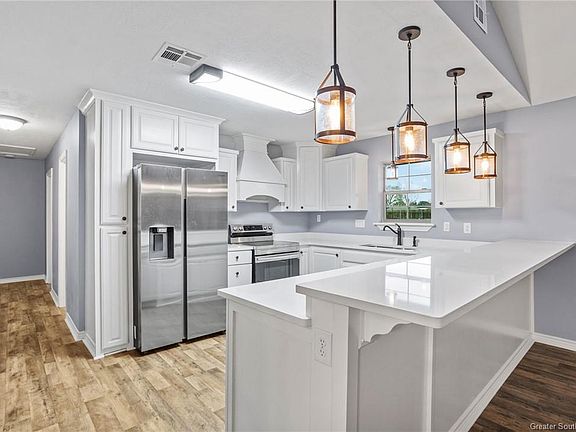 MOTIVATED SELLER - 100% USDA Financing Eligible (0% Down for Qualified Buyers)! This beautifully renovated 4-bedroom, 3-bathroom home offers the perfect blend of style and functionality, with a spacious split floor plan and plenty of extras for your growing family. The oversized master suite features a 20x22 retreat with a huge walk-in closet that has ample shoe space for both him and her, along with private access to a covered patio. There's also a junior master suite, ideal for a teenager, guest, or in-law, complete with its own private full bathroom for convenience and privacy. The kitchen is a chef's dream with quartz countertops, a large island, and stunning pendant lighting, creating the perfect space for cooking and entertaining. The home includes two spacious living areas, a dining room with soaring cathedral ceilings, and plenty of room to gather and make memories. Recent updates include two brand-new central air systems, and the property sits on a 1-acre lot, offering plenty of space for outdoor activities. Located in Flood Zone X, where no flood insurance is typically required, this home is move-in ready and comes with a 1-year home warranty for peace of mind. With a seller ready to negotiate and so many features, this property is a must-see! Schedule your showing today and make it yours. All measurements are M/L. Seller reserves Lake Charles Title for closing.