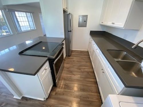 Totally renovated 2 bedroom 1 bath upstairs apartment located in a quite cul-du-sac in the highly desirable Mesa Verde community of Costa Mesa. This property features laminate wood flooring throughout. Features include updated kitchen with quartz counters, private in-unit stackable washer dryer, private one car garage with tandem second parking space. Centrally located near Harbor blvd. & the 405 freeway.