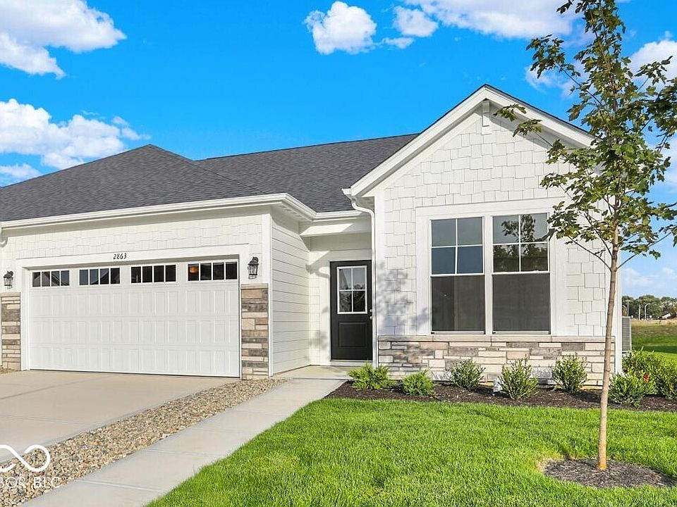 This charming paired villa by family builder Olthof Homes offers 1,609 square feet of single-level living with 3 bedrooms and 2 bathrooms. The home features 9 foot ceilings throughout, creating a bright and open feel. The kitchen is equipped with stainless steel appliances, quartz countertops, and modern cabinetry, flowing seamlessly into the great room and out to a covered patio. The owner's suite includes a walk-in closet and private bathroom for comfort and privacy. A 2 car garage provides convenience, and the HOA takes care of lawn care, snow removal, landscaping, and irrigation, making this a truly low-maintenance, move-in ready home.