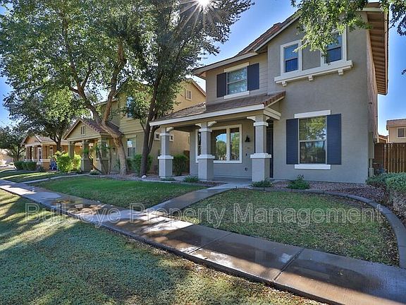 Do not miss this fantastic 4 bedroom / 3 bathroom home with a 2 car garage in Gilbert! This two-story home features tile and carpet flooring, high ceilings, ceiling fans, and window coverings. The kitchen comes complete with upgraded counters, a breakfast bar, a pantry, and appliances including a refrigerator, dishwasher, microwave, and range oven. Washer/dryer included. The primary bedroom features a walk-in closet, an attached bathroom with upgraded counters, and dual sinks. Enjoy a private fenced-in yard with a covered patio. This community features a refreshing a park with playground. Contact us to see this home today!