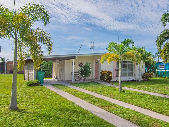 A Little Charmer in Sandpiper! 2 bedroom, 1 bathroom, CBS Home! Spacious Kitchen with Breakfast Bar for extra seating. Tile Throughout the Living room, Dining and Kitchen. Carpet in the Bedrooms. Laundry Room Located Inside. Nice Large Carport to Shade your car from the Florida Sun or Screen it in to add a nice Outdoor Living Area.Large Work Shed in the back with Electric! All Sizes and Measurements are approximate. Buyer to verify all information, please.