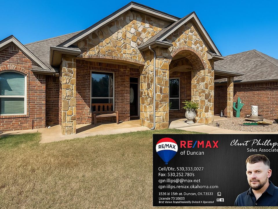 Listed by Clint Phillips RE/MAX of Duncan, for showings or information call (580)333-0027. 286348 Comanche Lake Ln, Comanche, OK 73529. PRICE REDUCED 4 Bedrooms | 2.5 Baths | 2,516 Sq Ft | 10 Acres MOL | Saltwater Pool | 3-Car Garage Discover the perfect blend of comfort, privacy, and natural beauty with this stunning single-family home nestled on 10 acres MOL heavily wooded filled with wildlife. Step inside and be welcomed by soaring 10-ft ceilings, beautiful stained wood trim, and a spacious open layout designed for both relaxation and entertaining. The living room features large picture windows showcasing breathtaking views of the pool and backyard. Interior Highlights: 4 Bedrooms + Flex Space (perfect as an office or 5th bedroom) 2.5 Bathrooms, including a Jack & Jill bath and convenient guest half-bath Luxurious master suite with dual vanities, walk-in shower, jetted tub & safe room inside the walk-in closet Beautiful kitchen with stained cabinets, pantry, built-in stove, and built-in oven Propane fireplace insert, built-in sound system, and tasteful tile & carpet flooring throughout Outdoor Features: Custom 7-ft in-ground saltwater pool, ideal for summer entertaining Expansive backyard with wooded acreage and amazing views Oversized 3-car attached garage for vehicles, storage, and hobbies This home is more than just a house, it’s a private retreat with modern amenities, wide-open space, and the tranquility of nature right at your doorstep. Located just minutes from Comanche, with easy access to Duncan and surrounding areas.