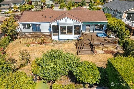 Located in the lower Marine Hills area near Redondo Beach. A breathtaking community of endless views of Puget Sound, Vashon Island and Olympic Mountains. This 3 bedroom, 2 bath home has an oversized living room and oversized primary suite bedroom plus a very spacious family room. It features a lovely kitchen with a big peninsula, stunning cabinets, huge windows providing natural lighting and panoramic views of the sea, sky and mountains. Enjoy the two big decks, the jacuzzi, the ocean breeze and those amazing sunsets. This home is equipped with an A/C for those hot days and a fireplace for those cooler nights. Freshly painted inside/out. Option to join the Marine Hills Swimming and Tennis Club. Come see it!