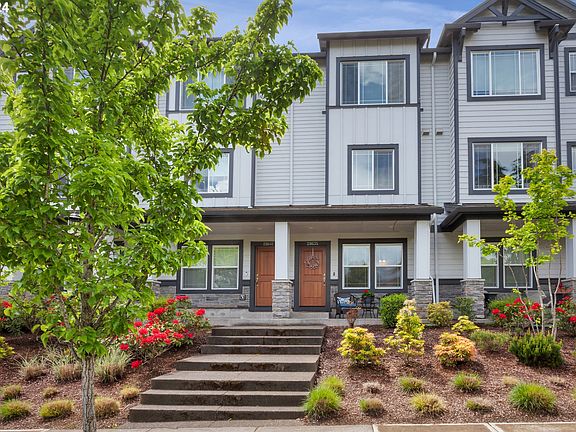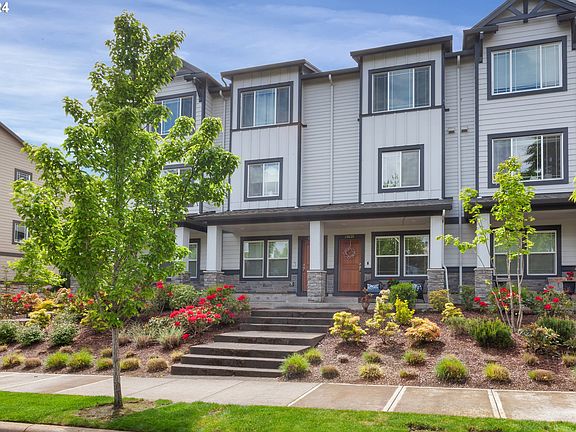 Recently built in 2017, this updated townhome is located in the desirable and beautiful, master-planned Villebois community. You'll enjoy open-concept living on the main level with a modern living, dining, kitchen space, and a balcony overlooking the lovely neighborhood. Enjoy light & bright living, with a blend of cool and warm timeless tones from the laminate flooring to the rich cabinetry, countertops, large kitchen island and backsplash. On the upper level you'll find a primary bedroom and a second bedroom, both with en suite. Conveniently located on the same floor is the laundry area. The lower level boasts access to a single-car garage and added family room/flex space. Directly across the street from your charming covered front porch patio and beautiful landscaping, you will find Montague Park, just one of the many amenities to be enjoyed from your home here in Villebois. An active and vibrant lifestyle awaits you with so many sport courts, nature and play parks at your fingertips. You'll find pickleball, basketball, tennis and volleyball courts, a skate park, dog park, plenty of playgrounds and miles of biking and walking paths! Attractions include the Wilsonville Farmers Market, access to Graham Oak Nature Park, shopping, dining, seasonal events, Village Square and the great Wilsonville schools!