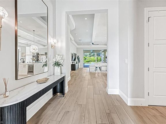 IMMEDIATE GOLF MEMBERSHIP - Situated on over one half of an acre, the largest lot in LaCaille, this McGarvey Gallina model in Quail West’s neighborhood of La Caille, offers the perfect combination of luxury, elegance, and comfort. Stunning 3-bedroom, plus den/study/4th bedroom, 3.5-bathroom custom home built in 2018 features a climate controlled 3 car garage, whole house reverse osmosis water purification system, AV system & full security system. Designer-curated finishes harmoniously blend with its decor, delivering an ambiance that is both sophisticated and relaxed. Organic fabrics throughout and other bespoke details such as lighting, fixtures and a custom wine bar. An open floorplan achieves a seamless indoor/outdoor flow through expansive walls of glass open to the lanai. The lush tropical landscaping and serene surroundings provide a peaceful retreat. There are no adjacent homes on either side of this home offering complete privacy. The outdoor oasis provides a heated pool & spa with water features, oversized covered living area complete with retractable hurricane screens, fireplace and a separate covered grill & bar entertainment area. Quail West residents enjoy access to top-notch amenities such as two championship golf courses, tennis and pickleball courts, a state-of-the-art fitness center, bocce and multiple dining options.