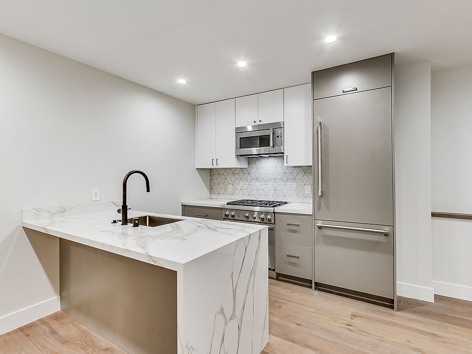 Private front patioQuartz countertopsRenovated kitchenStainless steel appliancesDesigner cabinetsHardwood floorsIn-unit washer and dryer