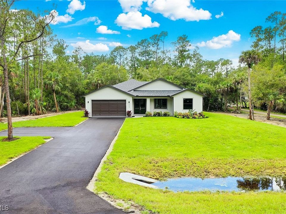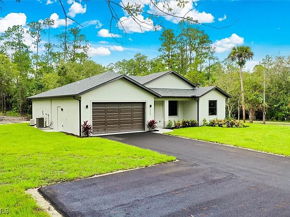 MOVE IN READY! SELLER IS OFFERING A BONUS TO BUYERS WITH AN ACCEPTED OFFER BY SEPTEMBER 30TH: CHOICE OF ONE OF THE FOLLOWING: 36" Blackstone grill with air fryers OR large capacity washer & dryer OR screening in of rear lanai ...Move right in and fall in love with this brand-new Daytona Model, perfectly nestled on a sprawling 2.5-acre lot—offering the freedom to add a pool, workshop, or guest house. Inside, 1,546 sq ft under air of thoughtfully designed living space features 3 bedrooms, 2 baths, and a seamless open floor plan. Designer touches are everywhere: 24" porcelain tile, 36" wood shaker cabinets, granite counters, and a full stainless appliance package. The primary suite feels like a private retreat, complete with a spacious walk-in closet, dual vanities, and a tiled walk-in shower. Built with comfort and peace of mind in mind, enjoy a whole-house reverse osmosis system, generator-friendly water setup, gravity-fed septic, termite baiting system and impact resistant windows & doors. Outside, embrace the quiet of your own private paradise, offering a canvas that is waiting for you to create your on private oasis. Only minutes from neighboring amenities, shopping, dining, the beaches and the Big Corkscrew Regional Park. Move in ready...bring your offers today. **Photos of the INSIDE are of a newly completed home of the same model. Exterior photos are the subject home. Colors and finishes will vary.
