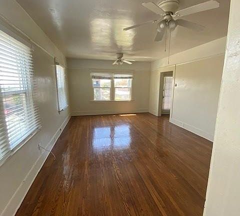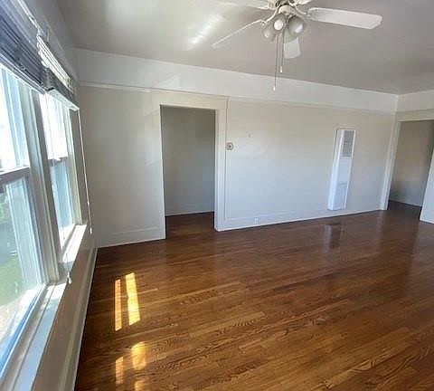 Huge upstairs 1 Bedroom/1 Bath with office/laundry room. Original hardwood floors in great condition and super shiny. Windows in living room on east walls and south walls. Kitchen is cute with new refrigerator and gas stove. Full bath with pedestal sink. Extra room has washer/dryer hook-ups or can be used as an office. Will consider installing w/d if needed for tenant. Closet organizers. Shared yard with 4 other units. Owner pays water and trash. Great neighbors and great location.