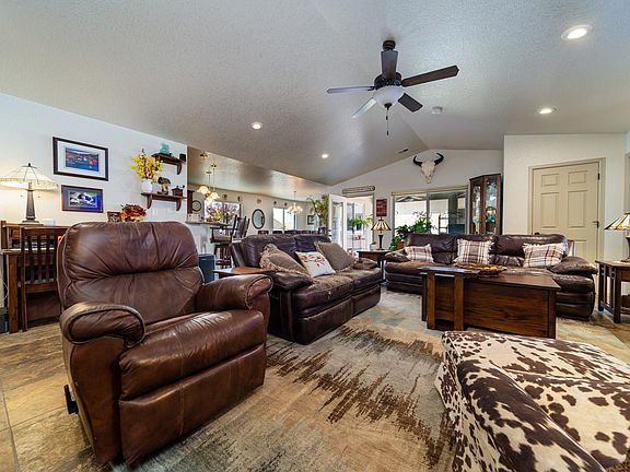 This one of a kind home located in the Unaweep Heights Subdivision has upgrade after upgrade. Beautiful slate inspired porcelain tile is laid throughout the main living space, while cozy carpets are found in all four bedrooms. An open floor plan lends itself to easy entertaining, and the dinning space is large enough to host exceptional dinner or holiday get-togethers. Cherry colored cabinets and granite countertops can be found in the kitchen and bathrooms. Stainless steel appliances including a double oven will make cooking a snap! The primary suite is oversized with an on suite five-piece bathroom, and not one but two walk-in closets! This home also sits on one of the largest lots in the Unaweep Heights Subdivision. The home has an attached finished 2 car garage, but that's not all. The flagged lot also has amazing RV parking and a huge heated and cooled shop! The shop includes an additional 2 car garage, half bath, and space that can be used to tinker on projects or as additional living space. Don't miss an amazing opportunity to own such an amazing
