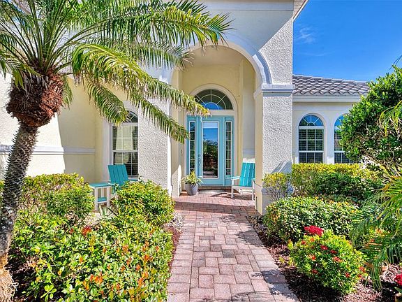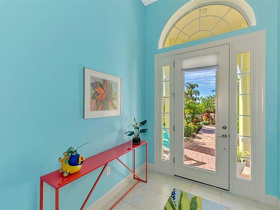 Welcome to Your Tropical Oasis! Step into a world of vibrant charm and perpetual vacation vibes with this stunning 4-bedroom, 3-bathroom Florida retreat. Perfectly blending fun and sophistication, this home is a one-of-a-kind masterpiece with unique Key West-inspired décor. Bright neon and coastal beachy colors create a joyful atmosphere, making every day feel like a getaway. Additionally, what truly sets this home apart is the peace of mind it provides—no storm shutters needed! The home is fully outfitted with certified, energy-efficient IMPACT WINDOWS throughout, offering superior protection, quieter interiors, and long-term value. The property also boasts a desirable extended 3-car garage, offering ample space for vehicles, storage, or even a workshop. Outside, lush, tropical landscaping envelops the home, providing unparalleled privacy and the ambiance of a secluded paradise. The meticulously designed gardens lead to an expansive screened lanai where you'll find the centerpiece of the outdoor living space: a heated pool and spa. Relax on the in-pool lounge chair platform and enjoy the soothing sounds of the cascading fountain and unwind in your own tropical haven. Inside, the home is as functional as it is stylish, offering a large great room open to the kitchen and motorized blinds. Recent valuable upgrades include a brand-new 2024 tile roof, and replaced air conditioner, water heater, dishwasher, and bedroom carpets. Designer furnishings, available for purchase, elevate the refined yet playful vibe, ensuring this home is move-in ready and ideal for entertaining. Whether hosting guests or seeking your own slice of happiness, this home is a perfect blend of relaxation and style—a true “happy place” sure to bring smiles and cherished memories for years to come. Call today to schedule your private showing and explore all the exceptional features of this estate home and the reputable Riverwood community!