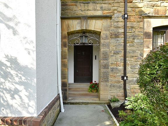 Stunning French Normandy with magazine-worthy curb appeal has 6 bedrooms, 3 1/2 baths; and it overflows with beautiful architectural detail. This house features many leaded glass windows, lots of carved woodwork, classic plaster moldings, high ceilings, thick wood doors & more. There are hardwood floors throughout. The sunken living room is very spacious with beamed ceiling, an oversized fireplace & an impressive wall of leaded glass windows that streams with natural light. The dining room is spacious and features picture frame molding. The 1st floor also features a wood panelled library or family room with built-ins and gleaming hardwood floor. The kitchen has been recently updated and features granite counters, tile backsplash, porcelain flooring, stainless steel appliances and breakfast room. The kitchen opens to a heated sunroom. The sunroom is another true highlight of this house. This room is spacious and bright. It features a pass through to the kitchen and a skylight. It overlo