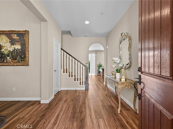 Gorgeous home located behind the gates in Valencia's West Hills Community. As you enter into the courtyard, you will immediately feel the privacy that this home represents. Feel welcomed as you step into this spacious executive home. Featuring 6 bedrooms and 6 bathrooms. Just to the right of the foyer is an entrance to the SEPARATE CASISTA with a spacious bedroom and walk-in closet. There is a full bathroom and laundry area with a washer/dryer. The casitas living area is open to the kitchenette featuring a built-in refrigerator, counter bar, and lots of cabinets. With its own separate entrance, the casitas is perfect for your parents, guests or additional rental income. Returning to the main home there is a large formal dining room with 2 story high ceilings and a stunning light fixture. There is beautiful wood-like flooring throughout the home. A second bedroom ensuite with a full bathroom is also located downstairs. The gourmet kitchen has a good-sized island, gorgeous cabinets, walk-in pantry, breakfast nook, granite countertops, and stainless steel appliances. A spacious family room has a fireplace and there are plantation shutters throughout the home. Upstairs you’ll find 4 bedrooms plus a bright open loft area that could make a great study area or home office. There are three additional bedrooms, one bedroom is an ensuite with its own bathroom. There is also a hall bath with double sinks. The "light and bright" primary bedroom is very large and has a sliding door out to the balcony, where you can enjoy your morning coffee. The primary bathroom features a soaking tub, a separate walk-in shower, dual sinks, a built-in vanity desk, and a large walk-in closet. Nice laundry room upstairs with a folding counter, sink, and cabinets. The private backyard has a patio, and grass area with plenty of spaces in both side yards for the new owner to plant flowers and trees. The home's exterior was recently freshly painted and the home has solar for energy efficiency. Bring your big family this home is turn-key! West Hills community offers access to a few resort-style pools & spas, beautiful parks with a clubhouse, basketball courts, playgrounds, and more. Very close to award-winning schools including a shortcut walking to West Creek Academy. Amenities have so much to offer with a pool, clubhouse, & paseo walking trails. A must-see!