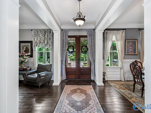 Why wait for new construction when you can live in LUXURY right now! All the upgraded features and none of the wait and a warranty. This gorgeous home boasts 10' ceilings, wood floors throughout, SS appliances (refrigerator remains), granite, custom cabinets & bookcases. First floor master suite is isolated and includes large custom walk-in closet and spa bathroom with tile shower, whirlpool tub, and separate vanities. Guest suite, dining, and study downstairs. Upstairs has 2 additional bedrooms, each with private bathrooms that open to the balcony and bonus room. Covered porch with wood burning fireplace, outdoor kitchen, and 3 car rear entry garage. This home has too many upgrades to list.
