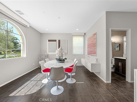 MAIN FLOOR PRIMARY SUITE, in Gated Valencia West Hills with, BREATHTAKING VIEWS. Welcome to your dream home: beautifully designed with sweeping valley and hillside views in one of Valencia’s most sought-after gated communities! This stunning property blends elegance, comfort, and functionality, with modern fininishes, tall doorways, and expansive windows offering plenty of natural light. The open-concept family room boasts a sleek modern fireplace with custom recessed wall features, and seamlessly flows into the living spaces on the main floor. The kitchen features a generous center island with seating, a built-in wine fridge, elegant granite countertops with mosaic tile backsplash, under-cabinet lighting, built-in range, double ovens, walk-in pantry, and stainless steel appliances. A formal dining room with custom European cabinetry provides the perfect setting for gatherings, with a full guest bath on the main level. The spacious main-floor primary suite is a true retreat, featuring an open layout, walk-in closet with custom built-ins, and direct backyard access where you can soak in the gorgeous views! The luxurious ensuite bathroom offers dual sinks, abundant counter space and storage, a soaking tub, separate shower, and a private water closet. Upstairs, a well appointed loft offers flexible living space, with two additional bedrooms featuring walk-in closets plus access to a full bath with dual vanities and a tub/shower combo. The backyard is a luxe low-maintenance entertainer’s paradise, thoughtfully landscaped with hardscape accents, a built-in fire pit, and plenty of space to relax or host, all framed by incredible panoramic views! Convenient indoor laundry room + 2 car garage. The Valencia West Hills HOA offers resort-style amenities including 3 pools, spas, sports court, playground, clubhouse, miles of walking paths, and gated access. All this, just minutes from top-rated schools, shopping, dining, and freeway access—while still enjoying the privacy of a gated community.
