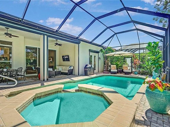 Golf membership included! Enjoy immediate access to Vasari Country Club with no waitlist. Beautifully maintained and thoughtfully updated, this residence offers 2,544 sq. ft. of comfortable living with 3 bedrooms, 2 baths, a den, a formal dining room, and a 2-car garage. One of Vasari’s most desirable floor plans, the home has a simple, fresh, Florida-elegant feel with an open layout and split bedrooms for guest privacy. The updated kitchen features quartz countertops, all-new appliances including a double oven, induction cooktop, dishwasher, refrigerator, and microwave, plus a new sink and faucet, designer backsplash, and recessed and under-cabinet lighting. A new washer and dryer complete the laundry room upgrades. The primary suite includes two walk-in closets and a spa-inspired bath with dual vanities, a soaking tub, and a frameless glass shower. Direct access to the lanai brings the home’s tropical, peaceful outdoor oasis feel right into the suite. Outside, enjoy a private salt water pool and spa area enhanced with a new pool heater, new pool pump, and color-changing LED lighting, positioned with western exposure for warm afternoon light. The lanai provides generous seating and dining space, along with new fans and lighting, smart hurricane shutters, and refreshed privacy landscaping. Additional updates include new interior and exterior paint, new ceiling fans in the family room and office, professionally cleaned tile and grout, and newer A/C (2024). Residents of Vasari enjoy an amenity-rich bundled golf lifestyle: an 18-hole championship course, golf practice facility, lighted Har-Tru tennis courts, pro shop, bocce, resort-style pool and spa, clubhouse with dining and social spaces, and a full calendar of events. Vasari is also celebrated for its beautifully maintained landscaping and a neighborly, welcoming community spirit. Centrally located near pristine Gulf beaches, downtown Naples, RSW and Naples airports, as well as exceptional shopping, dining, arts, and nature trails, this home truly offers the best of Southwest Florida living.