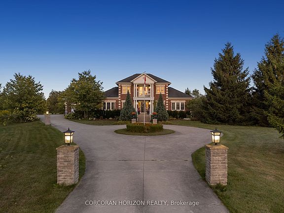 Welcome to 2865 Herrgott Road, a rare opportunity to own a timeless luxury estate on nearly 5 acres of manicured countryside, just minutes from city conveniences. This exceptional property blends elegance, privacy, and modern comfort with endless possibilities for lifestyle and leisure. A grand concrete driveway with post lighting leads to a circular turnaround with flagpole and abundant parking. Dual garages, including a heated lower-level garage with thermostat and interior staircase, offer convenience for car enthusiasts and families alike. Inside, sophistication meets comfort. The main floor primary suite features a walk-in closet and spa-inspired ensuite, while upstairs, two additional bedrooms each boast walk-ins and private ensuites. A chefs kitchen with gas stove, oversized built-in refrigerator, and premium appliances anchors the home, complemented by a formal dining room and inviting living area with gas fireplace and hardwood staircase that unites all three levels of the home.The finished walkout basement is designed for both relaxation and entertainment, with in-floor heating, a three-sided fireplace, two bedrooms, a custom wet bar, and a distinguished home office complete with built-in bookcases and rolling library ladder. Outdoors, the possibilities are endless. Imagine summer evenings on the expansive composite deck with its sleek glass railing, or hosting family and friends around the fire pit. The grounds are perfectly suited for recreation, whether its a volleyball game on the lush lawn, cultivating gardens, adding a pool, or even creating your own resort-style retreat. With nearly 5 acres of land, this property invites you to dream big and design the backyard youve always envisioned. This estate is more than just a home, its a lifestyle. Offering luxury, privacy, and space without sacrificing proximity to urban amenities, this is the perfect blend of country charm and modern convenience. This one-of-a-kind estate is ready to welcome you home!