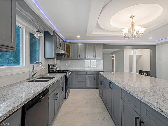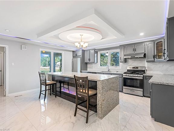 Welcome to 2865 Highway 3, a beautifully updated 1,700 sqft limestone bungalow tucked away on a generous 0.69-acre lot just outside Simcoe in picturesque Norfolk County. This classic mid-century home has been tastefully renovated in recent years and now offers a perfect blend of timeless character and contemporary comfort. Step inside to discover an open-concept layout featuring a welcoming living space with large windows and a cozy gas fireplace, seamlessly flowing into a modern kitchen and dining area—ideal for entertaining or family gatherings. The main level boasts two spacious bedrooms, including a primary with hardwood floors, while a fully finished basement adds two more bedrooms, a second bathroom, and extra living space—great for guests or a home office. Outside, the expansive yard offers incredible potential: with mature trees for shade, wide open spaces ready for landscaping or a garden, and complete privacy with no immediate neighbors. The long driveway leads to a double-car garage with an attached workshop area—perfect for the DIY enthusiast. Plus, there’s ample extra parking for RVs, trailers, and more (totaling 12 parking spots).