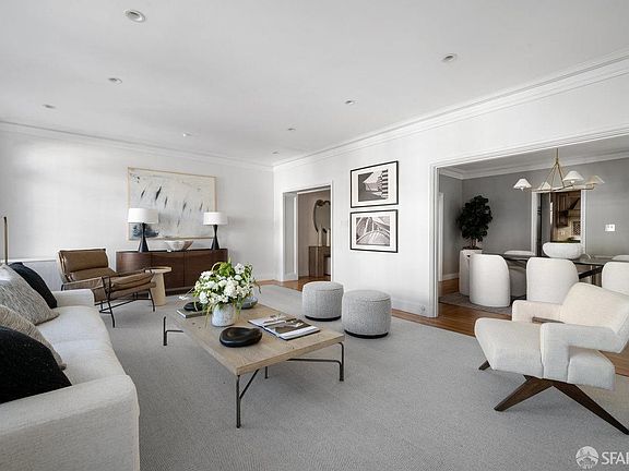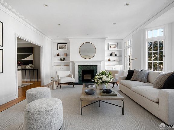 Ideally located on a flat tree-lined block in Pacific Heights, this elegant half-floor condo has incredible scale throughout. Details include white oak hardwood floors, original architectural details, great natural light, and south views. The entertainment spaces are grand in scale and flow seamlessly, offering the perfect setting for entertaining. The chic living room spans the width of the unit and features a wood-burning fireplace flanked by built-in cabinetry and a wall of picture windows. The kitchen has been thoughtfully designed with a gas range, wine refrigerator, breakfast area, and radiant floor heating. Positioned in the rear of the unit are the three restful bedrooms and two bathrooms. Two of the bedrooms enjoy sweeping southern views including views of Sutro Tower, Twin Peaks, and Mt. Sutro. The primary suite is flooded with light and enjoys a large walk-in closet and an en-suite bath with a dual-sink vanity, walk-in shower, and radiant floor heating. Washer/dryer hook-ups are conveniently located in the hall closet. 2865 Jackson St is a beautiful 1920's boutique building complete with parking, storage, laundry, and a common garden. Located just 1.5 blocks to Alta Plaza Park and near the restaurants/shops along Fillmore St, Sacramento St, and Divisadero St.