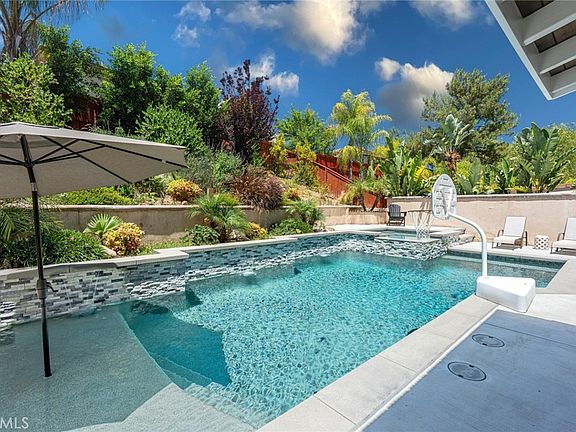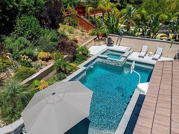 Spectacular 5-bedroom pool home at the end of the cul de sac in popular Double C Ranch Castaic! This newer community is right off the freeway, close to schools and with access to the lake and walking trails. All with no HOA or Mello Roos taxes. This is the largest model with a full bed and bath down (currently an office) and 4 bedrooms plus a loft up. All of the rooms and living space are of good size and the 27 solar panels that power it all are OWNED. There are a lot of nice upgrades including waterproof LVP plank flooring throughout the downstairs and a master bathroom remodel that will truly impress! Gorgeous tile, quartz counters and upgraded lighting. The kitchen/family room is quite spacious and the granite counters, stainless appliances, tile fireplace and custom-built ins all add to the pride of ownership you will experience. The pebble tech pool with baja shelf, covered patio, and cook station done in stack stone make for a true entertainer's yard and the wide side yard can accommodate a boat or extra toys. Great pool home!