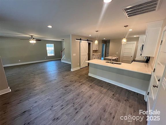 The Montgomery Plan offers a welcoming Covered Front Porch w/Wooden Post & Porch Ceiling, an Craftsman Style Front Door that leads into the Great Room that has an electric fireplace, an Open concept Dining & Kitchen that offers: Workspace Island with built-in drawer style sharp microwave, Breakfast Bar, Stainless Chimney Style Hood, Farmhouse Sink, Shaker Style Cabinet w/Quartz Countertops, a Built-In buffet w/floating shelves & a Lg Walk-in Pantry. The Primary En-Suite is Private & offers a Large walk-in closet, Incredible custom Tile Shower, Double Vanity w/quartz countertop. There is also a 1/2 bath down, a Laundry/Mud Room, and a Back Entertainment Porch. The upper-level layout has another Full bath & the 2 Additional Bedrooms