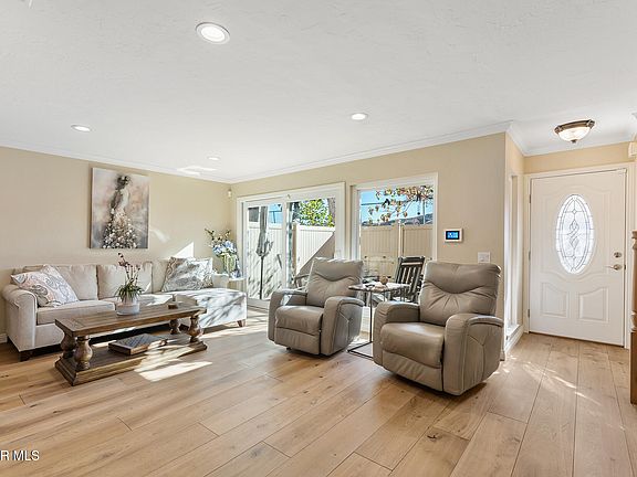 Welcome to the ideal Agoura Hills three bedroom, two bathroom townhome close to parks, hiking trails, shopping and award winning Las Virgenes schools. An abundance of natural light and European French oak floors showcase a large downstairs living and dining space with two private patios for entertaining. Meticulously remodeled kitchen with custom cabinetry offering ample storage and quartzite ''Taj Mahal'' counter tops. Custom iron banister leads upstairs to three spacious bedrooms and completely remodeled bathroom. An extra large easy access storage area upstairs is a nice surprise for your additional treasures. Milgard dual pane windows, inside laundry area, newly replaced water heater, and HVAC and more for the new owner to benefit from. Enjoy the Annandale communities, clubhouse, pools and spa while living in a home that backs to quiet open space.