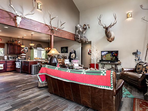 Well maintained and spacious floorplan describe this 3 BR, 2.5 BA low maintenance Masonite sided home in desirable Forest Trails subdivision! Great room design with master bedroom & powder bath downstairs with stone floor to ceiling gas fireplace, vaulted ceiling, custom alligator wood capped stair railing, S/S appliances and hardwood flooring. There are 2 bedrooms, 1 bath & large loft upstairs plus a bedroom area for overflow guests, kids room, craft or office area too! Perfect for year round living with central electric heat & A/C, chain link fenced back yard, Trex decking, attached oversized 2 car garage w/utility sink and county maintained paved roads with underground utilities. Home is fully furnished, including furniture, furnishings, decor, TV's, pictures, linens, dishes, silverware, pots & pans. Excluding all mounts & tagged items.