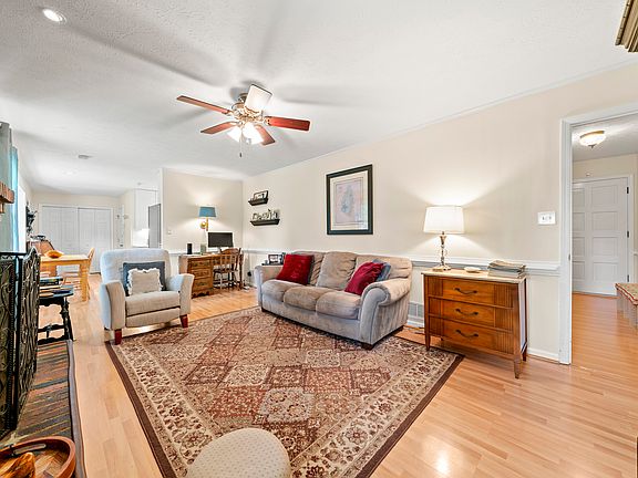 Situated on a flat half-acre lot, the property boasts a picturesque backyard with a fruit-bearing peach tree and blueberry bushes. It's perfect for outdoor enthusiasts with a gas hookup for grilling and a large wooden shed (12x16). The highlight of the yard is a stunning stone firepit area with solar-powered lights, ideal for entertaining.