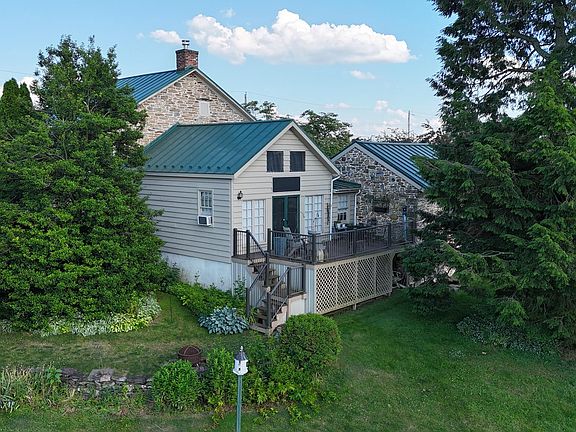 Nestled in a grove a little north of Gettysburg you will find this quintessential 1800 stone home offering four bedrooms and two full baths. Dubbed a 'Hidden Treasure of Gettysburg' in 2019 by Celebrate Gettysburg, this comfortable home exudes historic character and charm. The seller has lovingly cared for and improved this home for decades, creating over time a comfortable dwelling that serves today’s discriminating buyer while maintaining the atmosphere of a classic pre-civil war stone home. In approximately the mid 1990's, two extensions were added thoughtfully to this home: first to be added was a post and beam style great room off the back of the original structure and then later, a main level primary bedroom and full bath. Both extensions blend seamlessly with the original home and complement the flavor and feel of the original home. Original plank wood floors, up to 26” in width in places, were matched well in the newer portion of the home. Two large open fireplaces (one in the dining room and one in the basement), stonework, and thick walls with two unique built-in compartments (presumably created to store candles used to mark the way along Mummasburg Road) highlight the distinctiveness and personality of this place. A small galley kitchen with cherry cabinetry was designed for efficiency and installed in 2019. Upstairs you will find the original three bedrooms and a full bath with laundry that was added at a time when that convenience became an expectation. Close to the house is a 30 x 24 two-story garage/ shop, designed to coexist beautifully with the home. It provides plenty of storage and extra space for vehicles, equipment or a wood shop. The deck off the back of the home is situated in a way that provides vistas of your very own private park-like setting. A footbridge leads past the marshy area to a meadow-like setting next to Mummasburg Run right in your own backyard. Set up a picnic area and listen to the creek bubble next to you. In an effort to maintain this tranquil atmosphere the property, consisting of more than nine acres, has been placed in conservation so covenants dictate what may and may not be done here. Perennial gardens surrounding the home were featured as Gettysburg Times’ Garden of the Month in June 2019 and could be returned to their splendor with very little effort. Make your appointment today to tour this special property.