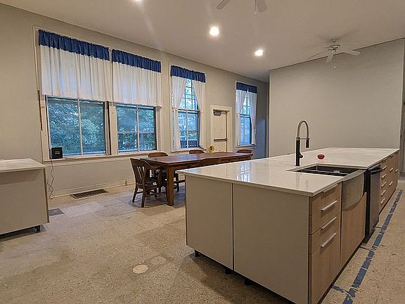 This is a renovated originally 2 room school house complete with a working bell. Everything has been redone: electrical, plumbing, lighting, heaters, water heater, water softener. I put in 4 bedrooms, 3 full bathrooms and a laundry room with a toilet room attached. There's a large deck on the back (1000 SQ ft). There's a fenced in yard for the doggos. And 4 acres for your hobby farm or whatever you might dream up.