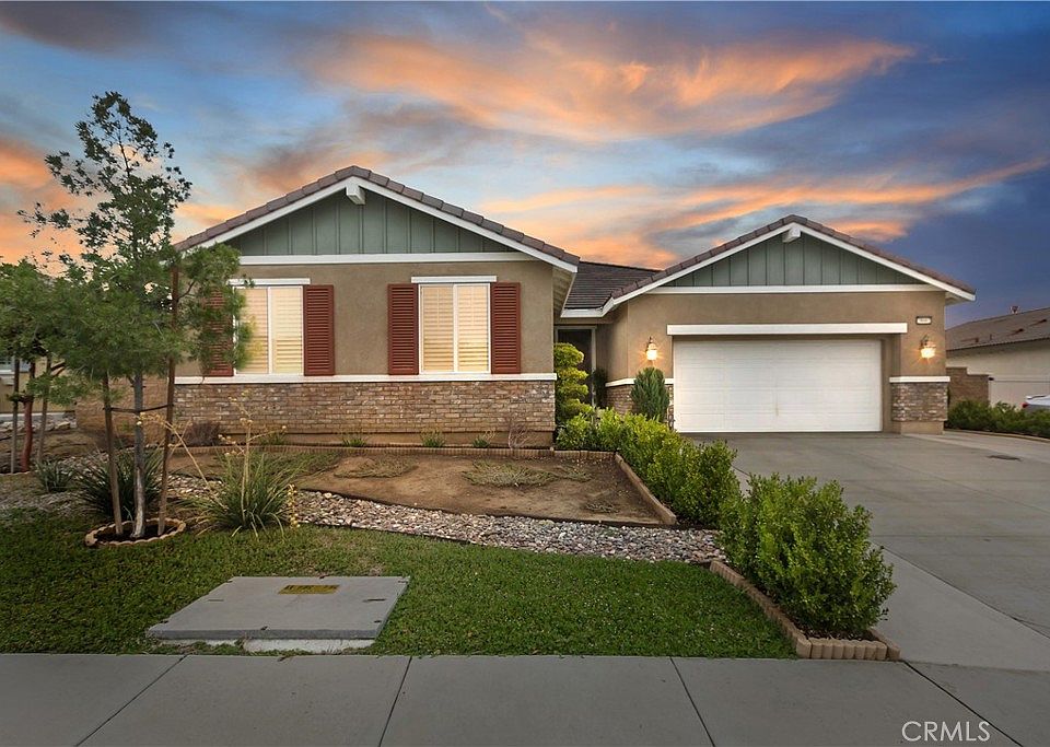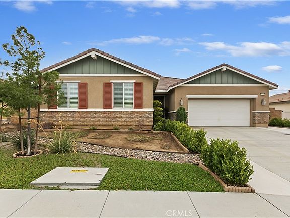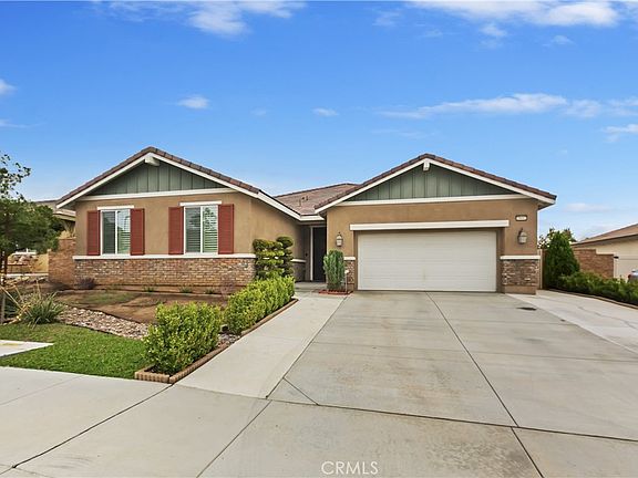 Welcome Home! This could be the home you have been waiting for! 28662 Wedelia offers any buyer an amazing opportunity to own a gem within this lively Menifee neighborhood. The thoughtful choices of upgrades in this 2,683 square foot home offer tiled flooring at entry, ceiling fan light fixtures, window shutters, custom interior paint just to name a few. Also, featuring five spacious bedrooms and 2 bathrooms and a guest half bathroom. When you walk through the door the comfort of the home is shown by the wonderfully kept condition. The magnetic gathering space of this wonderful home is the family kitchen, which boasts an expansive island perfect for meal preparation and entertaining, upgraded countertops, upgraded white shaker cabinets, and top-of-the-line stainless steel appliances, including a countertop stove, double oven, and built-in microwave. Recessed lighting and pendant lighting over the island keep the space warm and inviting. The kitchen is open to the spacious dining, and open to the family room appointed with a gas starter fireplace. With the door out to the covered patio space with ceiling fan and lighting this home is perfect for hosting gatherings or enjoying quiet family meals. This primary bedroom is a private retreat sure to be satisfying to any buyer. With ample space and convenience of its own primary bathroom with dual sinks and separate tub and shower, an oversized walk in closet. Outside upgrades include custom hardscape in front and back with a widened driveway for more space to park and backyard with planters added, lemon and peach trees, backyard on sprinkler system on timer, and also solar panels which can give substantial savings on electricity bills. The private covered patio, offers the opportunity whether relaxing or entertaining. The two car attached garage is oversized with ample storage, ceiling fans for anyone who uses their garage for more than just parking cars and provides direct access to the home. Located nearby hiking trail for the adventurers, convenient access for commuters to the 215 and 15 freeways. Nearby shopping, restaurants, and schools. Schedule your tour today!