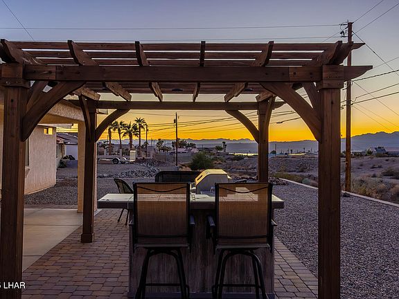 The 2-car garage offers an 8-foot door and is 29 feet deep—perfect for boats or desert toys—plus there's dedicated side parking with RV hookups. The backyard is made for entertaining, with a built-in BBQ island and stunning lake, mountain, and amazing sunset views. With no rear neighbors and a wash behind the property, you'll enjoy exceptional privacy.