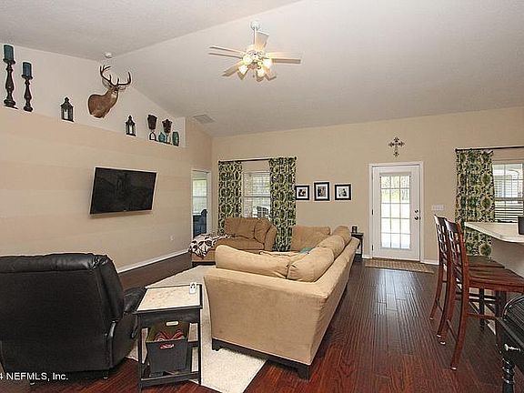This 4/2, 2169 sq ft brick home is country living just minutes from shopping. Wood and tile floors floors throughout. Garden tub. Newly tiled large master shower. All blinds, window treatments, and appliances stay (stainless steel appliances). Additional detached garage (30 by 20 by 12) on concrete slab out back has electric and plumbing. New electrical box in attached garage provides 100 amp breaker to garage. Fully fenced back yard with 12 foot swing gate. Seamless gutters and extended back patio. 1 year home warranty. For Virtual Tour click: photos, virtual tour, link, Panorama.
