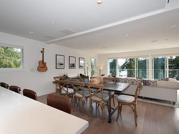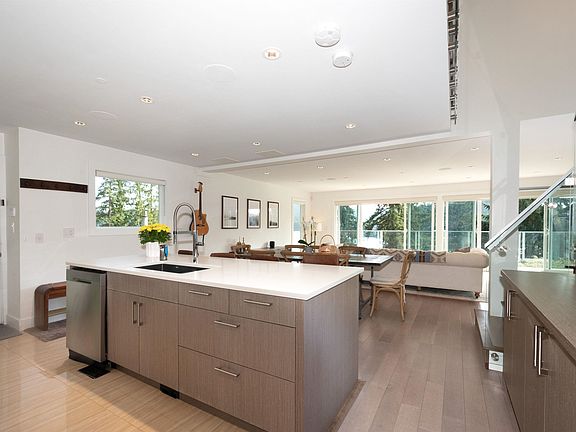 Amazing views; better than new house! Welcome to this spectacular top quality rebuilt home. Hidden up off the road, this home has ALL the extras. Drive up to your gated property and enjoy ocean/mountain views to the front; exclusive Quarry Rock trail access in back. Multi-level home w/ luxurious finishes and windows everywhere. High and bright open plan, w/ 3 bedrooms + den (4th bedroom?) up; suite and beautiful rec room down. Rare extras include A/C, auto blinds, smart lights/sound. Decks everywhere to enjoy the amazing sunny south facing outlook. Tons of parking; EV charger; workshop; lots of storage. Don't like stairs? Get out of your car and hop into the elevator. So many extras; too many to list. Walk to shops, restaurants, schools.