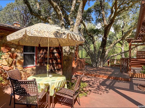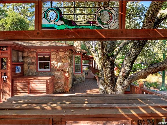 Affordable charming cozy rustic home, tucked away but close to town. Built in 1939 but updated with modern features. This home includes beautiful stonework inside and out, rock fireplace, Oak floors and stain glass windows throughout. Nice decking and sitting areas. Newer roof, water heater. Upgraded windows. 1 car garage, full laundry room. The garden is over the top with mature Oak, Redbud and Cottonwoods to name a few. Perennial shrubs and flowers. Sheds, spa convey. Must See!