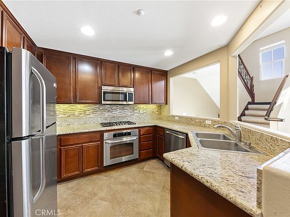 BACK ON THE MARKET! No fault of seller. This inviting 1,530 sq. ft. 2-bedroom townhouse in the heart of Temecula offers a comfortable and practical living space. Both bedrooms are generously sized, each featuring a walk-in closet and an en-suite bathroom with dual vanities. The well-appointed kitchen, equipped with stainless steel appliances, is perfect for everyday meals and easy living. High ceilings in the family room create an open, airy atmosphere, while a few steps up lead to a versatile office space overlooking the living area. Additional highlights include in-unit laundry and a two-car garage for added convenience. The downstairs bedroom also offers direct access to a private front patio, perfect for outdoor relaxation.