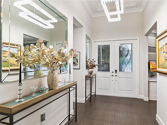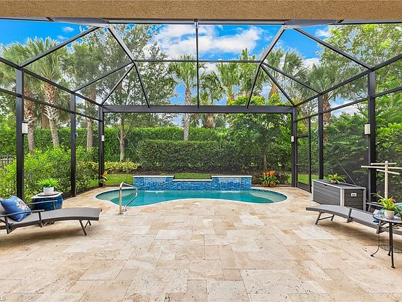 Price Improvement! This well-appointed move-in ready “Cabernet” floorplan is positioned on a lushly landscaped PRIVATE lot with no homes behind. Built with storm protection in mind, the home includes hurricane-impact windows and doors as well as Storm Smart hurricane-rated motorized shades and a WHOLE-HOUSE NATURAL GAS GENERATOR (providing uninterrupted power and peace of mind). Throughout the home you will see embellishments of designer LED lighting, premium fixtures and ceiling fans, crown molding, and custom motorized window treatments, tankless hot water heater, whole-house water treatment system, and landscape lighting. The great room features a custom bar with cabinetry and a wine refrigerator, perfect for hosting guests. Offering nearly 2,200 square feet of refined living space, this residence features gorgeous porcelain tile flooring throughout (no carpet anywhere) creating a sleek, clean, and low-maintenance environment that enhances both style and comfort. The thoughtfully designed layout includes 3 spacious bedrooms, 2 full bathrooms, plus a gourmet kitchen with a breakfast bar and casual dining area, a light-filled great room, formal dining room, a versatile den or office, and a large laundry room. Storage is abundant, with custom closets, an oversized walk-in storage room complete with built-ins and a 2.5 car air-conditioned including attached freshaire UV Light System garage to accommodate a golf cart or more storage. Enjoy both front and rear screened lanais for maximum outdoor living space. The kitchen is beautifully appointed with upgraded appliances, soft-close cabinetry, pull-out shelves, quartz countertops, boasting a perfect open layout ideal for entertaining. The expanded rear lanai is a private oasis, complete with panoramic no-see-um screening, travertine pavers, and a heated saltwater pool with spa jets at both ends and dual waterfalls. Valencia Bonita’s resort-style amenities are unparalleled, featuring a spectacular 40,000-square-foot Clubhouse and Sports Center. Residents enjoy an indoor-outdoor restaurant and bar, a vibrant social hall for concerts and themed events, a luxurious spa, multiple pools including resort, lap, and resistance pools, private cabanas, a fully equipped and staffed fitness center, billiards lounge, card rooms, pottery and crafts studio, a professional cooking studio, and courts for tennis, pickleball, and bocce. With dog parks, a pro shop, dozens of fitness classes, a full calendar of resident clubs, and a full-time lifestyle director, this community offers a vibrant lifestyle that rivals the finest resorts. Ideally located just minutes from the white-sand beaches of Southwest Florida, RSW International Airport, and the cultural, dining, and shopping destinations of Bonita Springs, Naples, and Fort Myers.