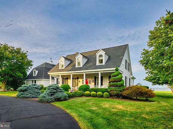 This superb custom Southern Living plan boasts impressive deep, intricate trim and multiple custom windows/transoms and is designed to take advantage of the expansive water views. The two-sided soaring brick fireplace can be used as a gas or a woodburning unit. A volume 2-story Great Room offers a wet bar for easy entertaining and access to a sizable deck along with extraordinary panoramic water views for miles! The sumptuous Gourmand Kitchen houses a commercial-style gas stove and a vast center island. The Breakfast Nook overlooks a sparkling 20X40 heated Inground Pool, generous stone patios and an absolutely breathtaking and truly exceptional Gazebo built with an outdoor kitchen that includes a grill, burners, a sink and multiple appliances, combined with a large mounted TV and plentiful seating for the ultimate outdoor living experience! A fourth wonderful full bath is found just off the garage and an outdoor pool shower is also provided for your boating and swimming enthusiasts. The well-lit 300 ft private pier houses a lift for your power boat plus additional space for a smaller watercraft to emphasize what a true waterfront lifestyle can offer. You will find a very generous main level Primary Suite featuring abundant closest space, a luxury bath and access to the deck in this gracious waterfront residence. A second rear staircase off the first floor Laundry and Pantry takes you to an additional lovely large Family Room and Office space which adjoin three Guest Bedrooms and two additional baths. Prepare to serve and entertain family and friends in the Formal Living Room and Romantic Formal Dining Room. Perhaps you will want to idle away the hours on the extensive front porch in the Southern Living style as you watch the sun set or bring that coffee cup out to your deck or Gazebo to see mesmerizing sunrises and your wine glass or drink out to face East to see memorable horizons where the moon comes majestically up to meet you. Community amenities include a Clubhouse, waterfront walking trails, Tennis Court, Boat Ramp and a small Playground. Lots of community events are held there if you want to join! Owner unsure of water frontage...believed to be wider that 210 ft. shown.
