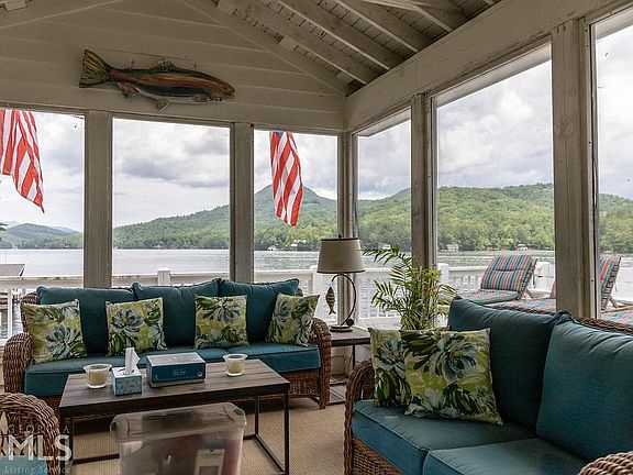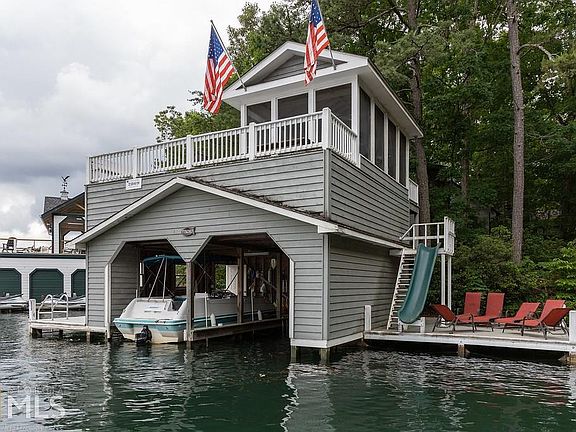 FEE SIMPLE! This 6BR/4.5ba custom designed Lake Burton home boasts spectacular long range views, a convenient main body location and lake views from almost every room. Main floor features an open floor plan, double sided stacked stone fireplace between the living room and separate dining room, a well-appointed kitchen with breakfast nook, screened porch and open sun deck, library and master suite with private porch. Terrace level offers family room with wet bar, game room, gym and covered porch. A gentle path along a creek with waterfall and koi pond leads to an adorable play house and 2 stall boathouse on deep water. Extras include a two car garage, easy paved road access, security system, and generator. Spacious gathering places. Rare find for Fee Simple.