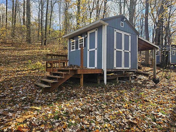 Lovely home on nearly 8 acres of wooded land with wildlife and mature trees. Thanks to the current owners' thoughtful updates, the home is move-in ready. Including an updated metal roof, flooring, light fixtures, and appliances. There is a spacious kitchen that opens up to the living room and dining area. There is a large covered deck that overlooks the rolling hills, the perfect spot for morning coffee and watching wildlife. On the property you will find oak, poplar, maple, peach, cherry, and apple trees. The property also features an oversized detached garage with room for vehicles, equipment, or a workshop, plus a storage shed and chicken coop complete with electricity. Survey available. Make your appointment today! Please see Agent Remarks.