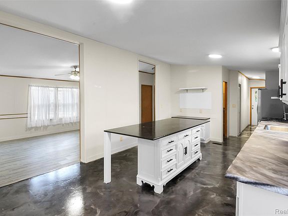 Huge island kitchenAluminum rampPrimary suiteWalk-in closetDesirable perimeter lotEpoxy floors and countersNewly updated bathroom