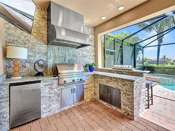 Bundled Golf! Transferable full golf membership! Experience the luxurious Golf and Country Club lifestyle of Bonita National in this stunning 2 Bedroom+Den, 2 1/2 Bath single family home complete with bundled golf! This gorgeous property is sure to check all your boxes. Beautifully appointed in earth tones with splashes of color throughout, this light and bright home features a large chef's kitchen, upgraded lighting, custom built outdoor grill and bar area, fire pit, and an inviting pool, all overlooking the lush golf course! The den is set up as a third bedroom and an attached 2 car garage provides security for your vehicle. Bonita National is a guard gated community and offers a stately Clubhouse with 2 pools, fine dining options, golf, tennis, fitness center with classes, and even a full-service spa.