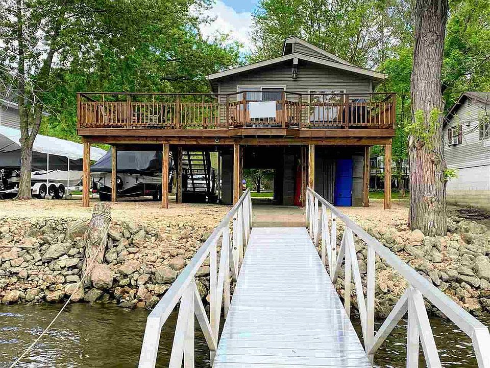 50 feet of your own shoreline on The Mississippi River. This immaculate, fully furnished cabin comes with a new dock and walkway. 3 bedrooms and vaulted ceilings with open kitchen, living room and dining make this a comfortable place for many. Updated and inviting along with all appliances and furnishings included make this a desirable property. Large wooden deck that has been recently power washed and re-stained includes a grill and patio set for you to enjoy immediately. Poured cement under the cabin with a storage shed. Views up and down the river and lots of memories to be made here.