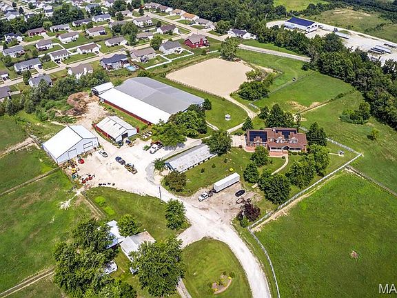 Mechlin Farm is an exquisite equestrian property amongst 23.68+/- scenic rolling acres in an incredible location in the heart of Wright City. Truly a horse owner’s dream, property features a massive 23-stall barn w/heated/insulated indoor riding arena (172'x79'+/-), 3 wash stalls, tack room, office, viewing room, hay storage, outdoor riding arena, (200’x200’+/-), 5-stall (36’x30’+/-) barn, 55’x35’+/- outbuilding w/HVAC, 13-stall barn w/concrete, wash stall & tack room, several fenced turnouts, 6 lavish pastures w/room for 2 more, guest house, & CHARMING 1.5 story CUSTOM BUILD home w/5 bedrooms, 3 full & 1 half bath, walk-out lower level with 5,654+/- sqft, 3-car oversized garage & NEW furnace (2025). Truly one-of-a-kind equestrian estate. GREAT use for storage & small contractors. Must see! Schedule your showing TODAY! Listing includes 2 parcels: Tax ID:04-20.0-0-00-012.000.000 & Tax ID:04-20.0-0-00-012.157.000. DUPLICATE LISTING OF MLS#25052421. See MLS#25052790 for less acreage.