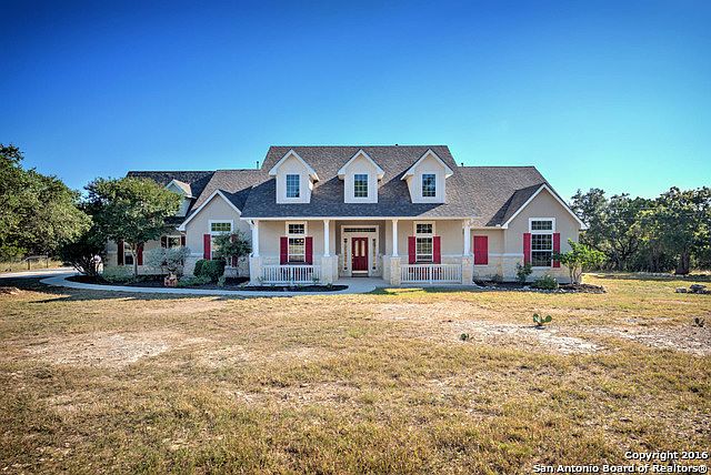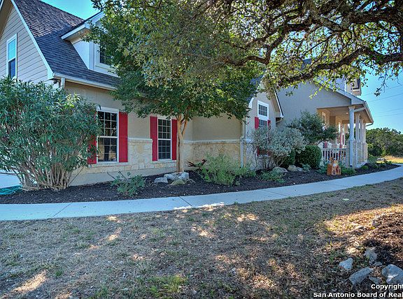 Country charm at it's finest on 1.2 acres of an incredible bluff view of the hill country. Kitchen, a cooks delight with gas stove, granite counters, slate floors, Energy Star Kenmore appliances, breakfast area with a wood burning fireplace that exudes country atmosphere. 2 split master bedrooms. Office could be used for a 4th bedroom. Bonus room above garage, (media or game etc). Entertain on your outdoor deck with builtin speakers, or just relax and watch the world go by. Come view your new home!